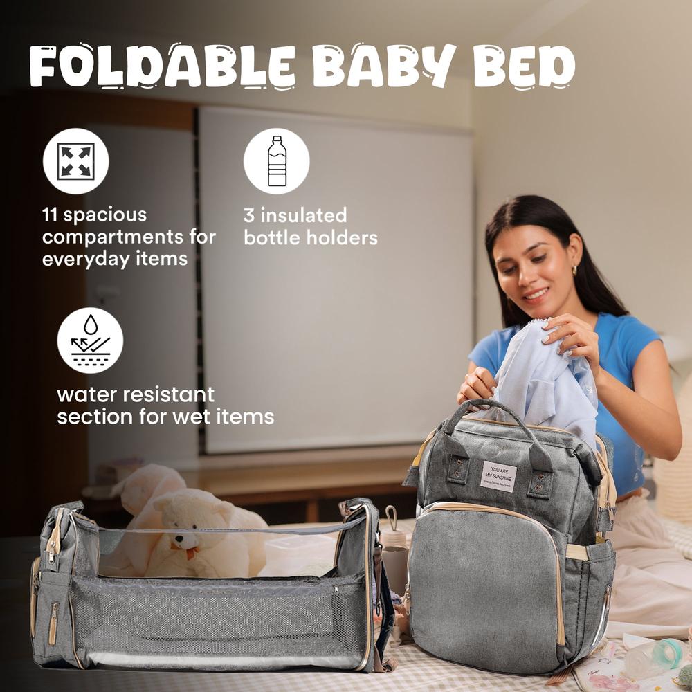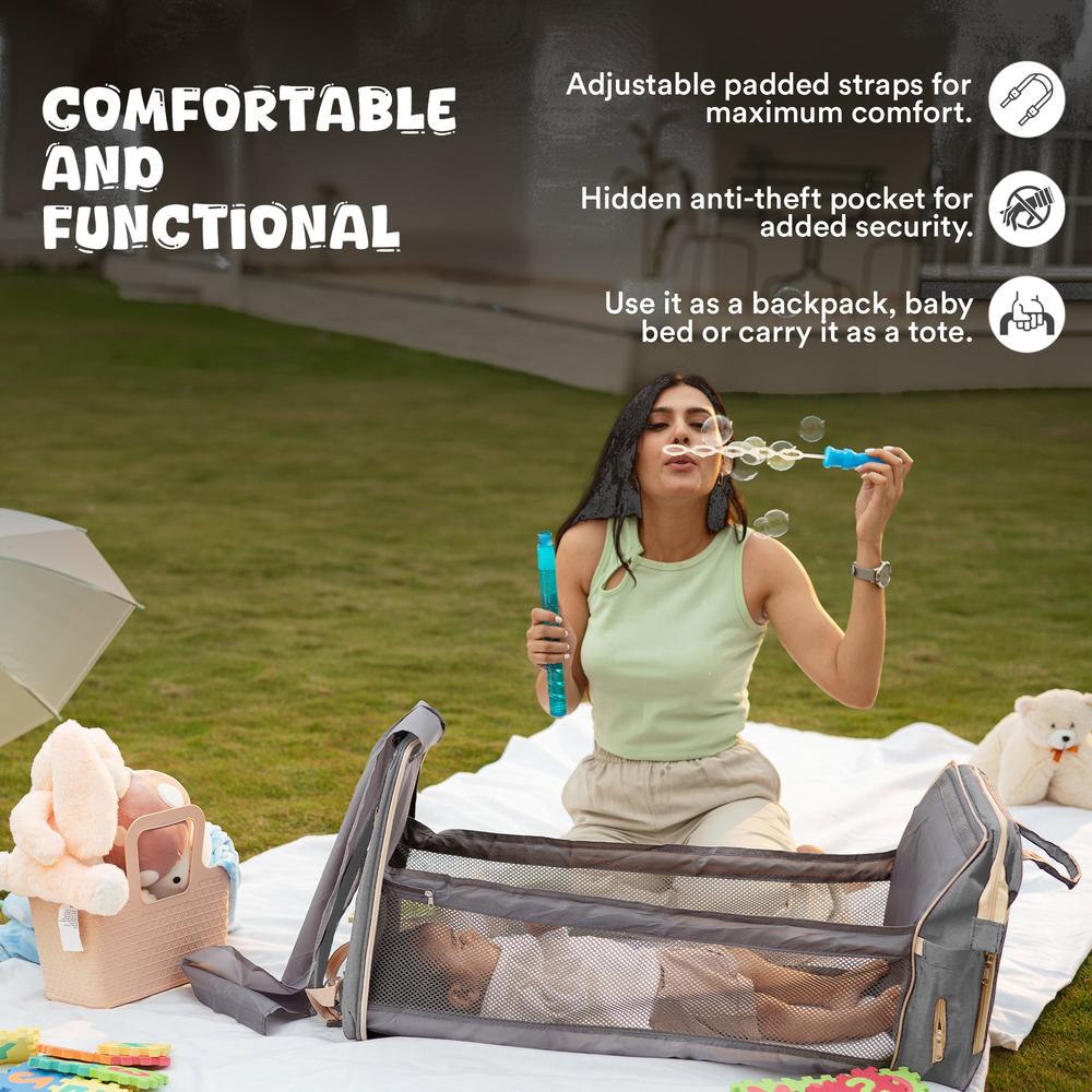 Tinyberg 3-in-1 Water Resistant Diaper Bag | Maternity Backpack with Baby Bed & Changing Station | Rest Nest