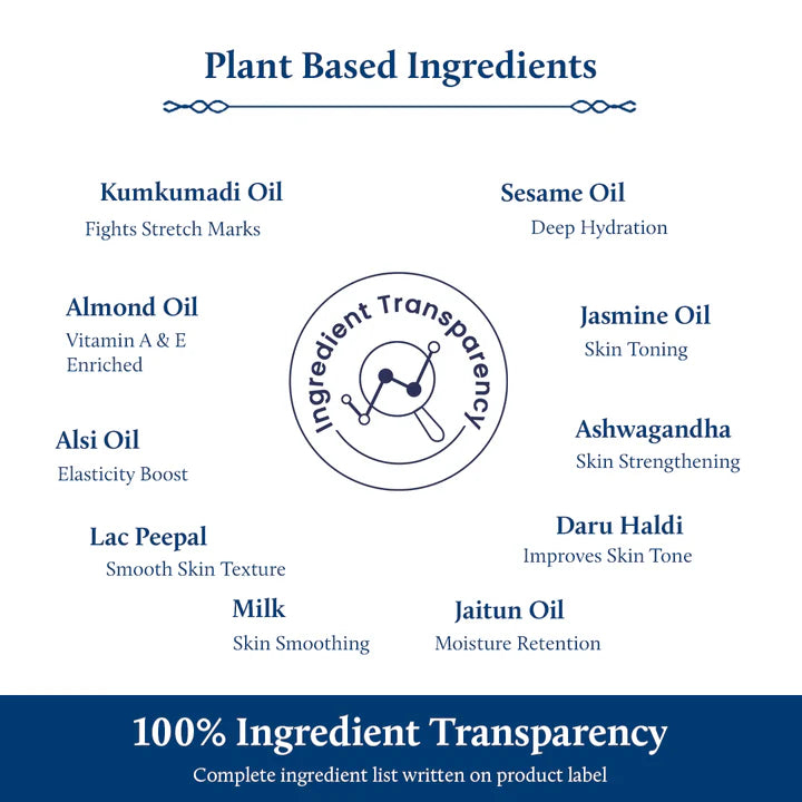 Blue Nectar Body Stretch Mark Oil is a potent mix of 12 herbs, enhanced with saffron and almond oil, that significantly reduces stretch marks, fine lines, and wrinkles. It is designed to significantly moisturize and nourish, making it ideal for usage throughout and after pregnancy. Sweet almond oil maintains the skin smooth and supple, while saffron brings out its natural shine and evens out the complexion. This oil acts as an excellent body polisher since it strengthens the skin barrier, producing a beautiful and healthy complexion. It is gentle on all skin types and has no harsh chemicals, making it a safe and relaxing choice for pregnant women and new mothers.