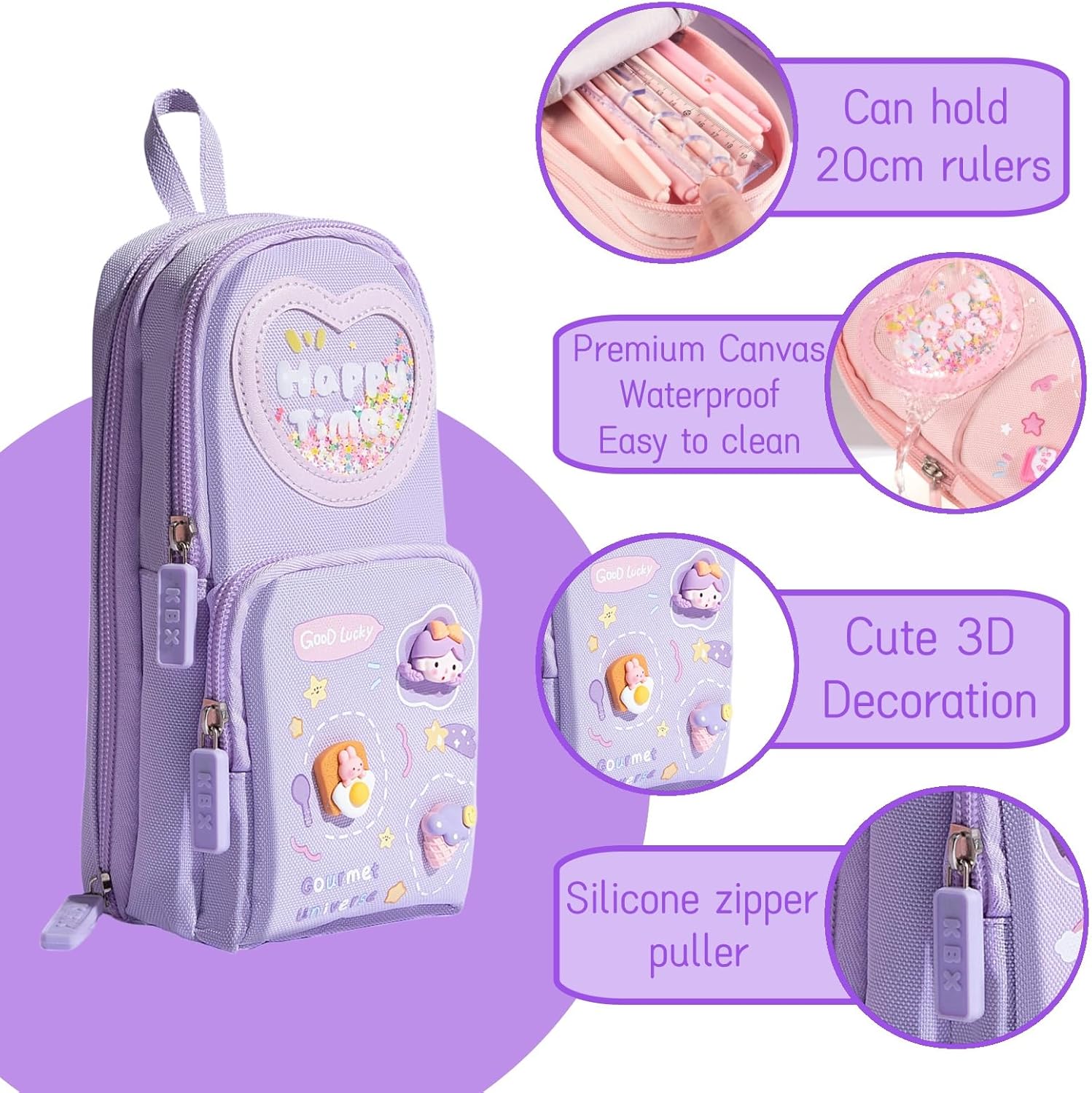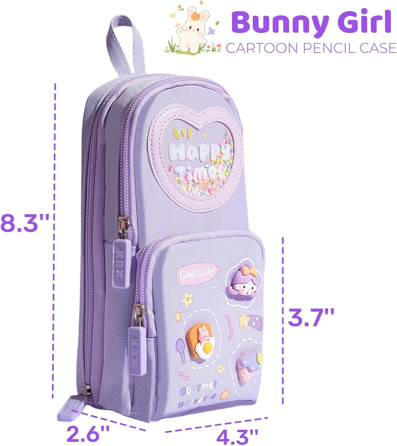 This stylish Cartoon Pencil Case for Girls is a perfect blend of fun, organization, and practicality for school-going children. Designed with separate slots, it neatly accommodates pencils, erasers, sharpeners, rulers, and a geometric set, keeping stationery well organized. Made for kids from nursery to secondary school, it also works as a multipurpose organizer for cosmetics, small accessories, tools, or miscellaneous items. Its attractive cartoon design makes it appealing to children, while the sturdy construction ensures durability for daily use. Ideal as a birthday gift, return gift, or special-occasion present, this pencil pouch is both useful and delightful.