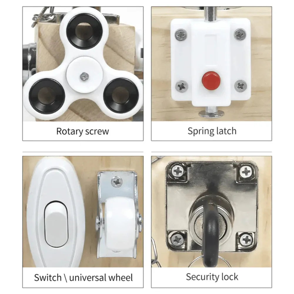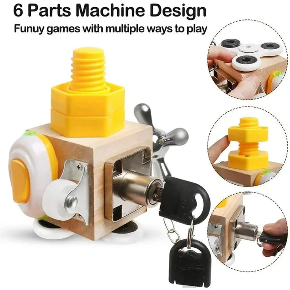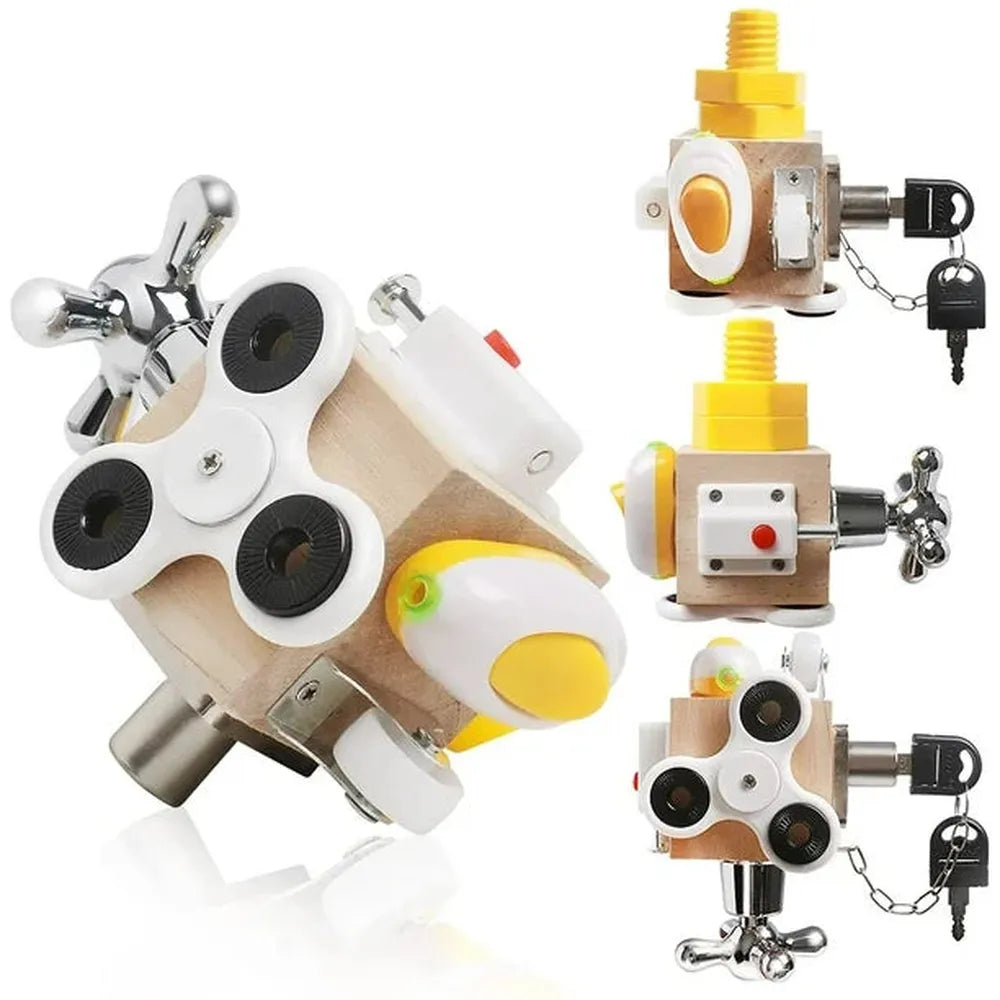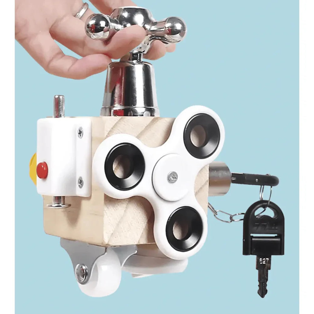 Encourage hands-on learning with the Busy Cube Montessori Sensory Toy! Designed to enhance fine motor skills, problem-solving abilities, and sensory development, this interactive activity cube is packed with real-world elements like switches, locks, gears, and spinners to keep toddlers and young children engaged. With a sturdy wooden design and multiple activities in one compact toy, it’s the perfect educational tool for curious minds!