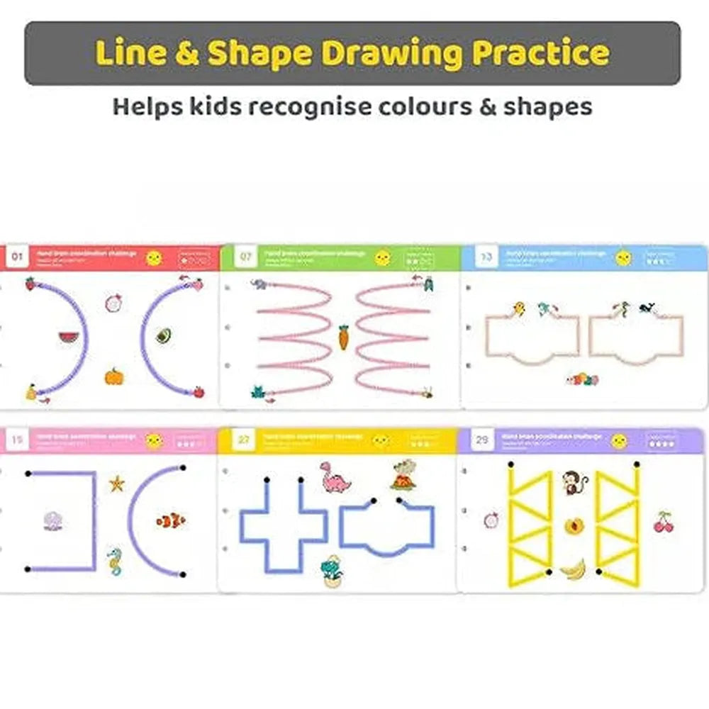 The Kidology Preschool Handwriting Practice Kit helps children aged 3+ build essential early-writing skills through 64 reusable tracing cards, fun patterns, curves, lines, and mazes. With erasable markers and grip tools, kids can practice again and again—boosting focus, control, and fine motor development through engaging, screen-free learning.